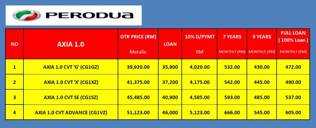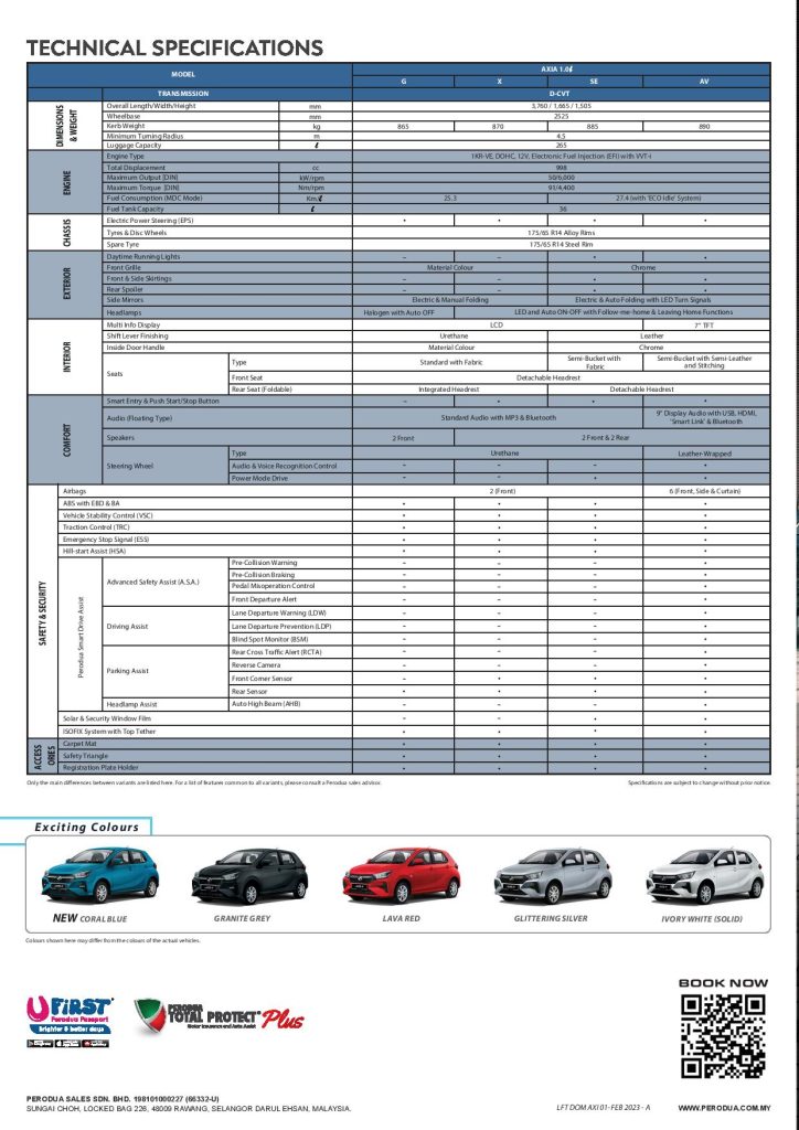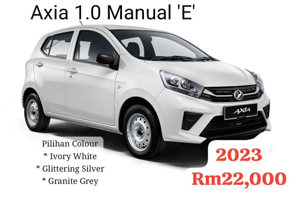 Harga Axia Baru 2025 berserta catalog penuh kereta Axia Model Terbaru 2025.