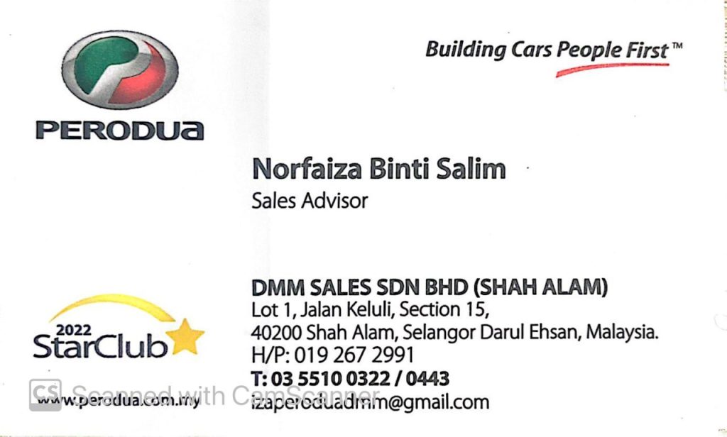 Perodua Puchong Perdana – Penasihat Jualan Perodua Pilihan Ramai, MS FAIZA ( PERODUA STAR CLUB ) merupakan penasihat jualan Perodua yang sah dan berdaftar. Perkhidmatan saya meliputi seluruh kawasan di Puchong Perdana, Lembah Klang & seluruh Malaysia. Saya menawarkan pelbagai model dan promosi terkini dari Perodua antaranya Perodua Ativa, Perodua Aruz, Perodua Axia, Perodua Myvi, Perodua Bezza dan Perodua Alza. Saya berpengalaman lebih 10 tahun sebagai penasihat jualan Perodua dan saya telah bantu ramai pelanggan mendapatkan kereta idaman mereka. Saya juga menawarkan khidmat nasihat dan pencerahan secara percuma untuk para pelanggan.